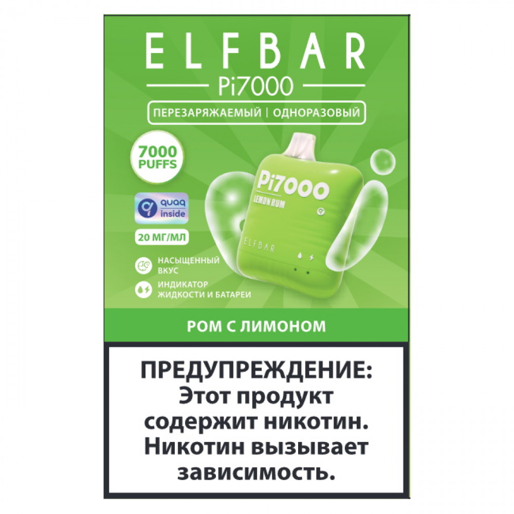 Elf Bar видыPi 7000 Elf Bar вкусыРом с Лимоном Elf Bar количество в блоке10 шт
