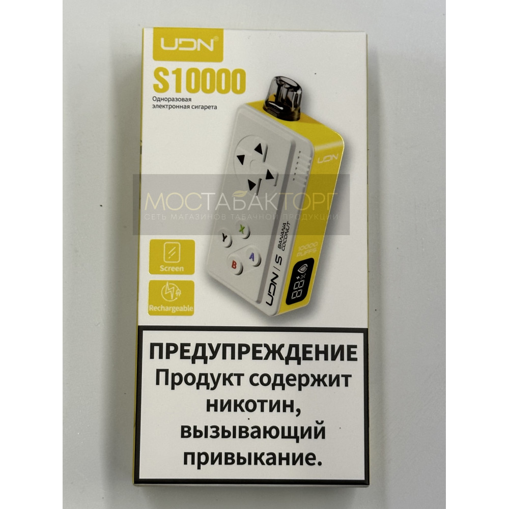 | UDN видыBar S 10000 | UDN вкусыБанан Кокос | UDN количество в блоке10 шт |